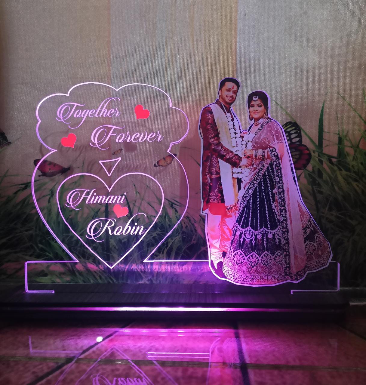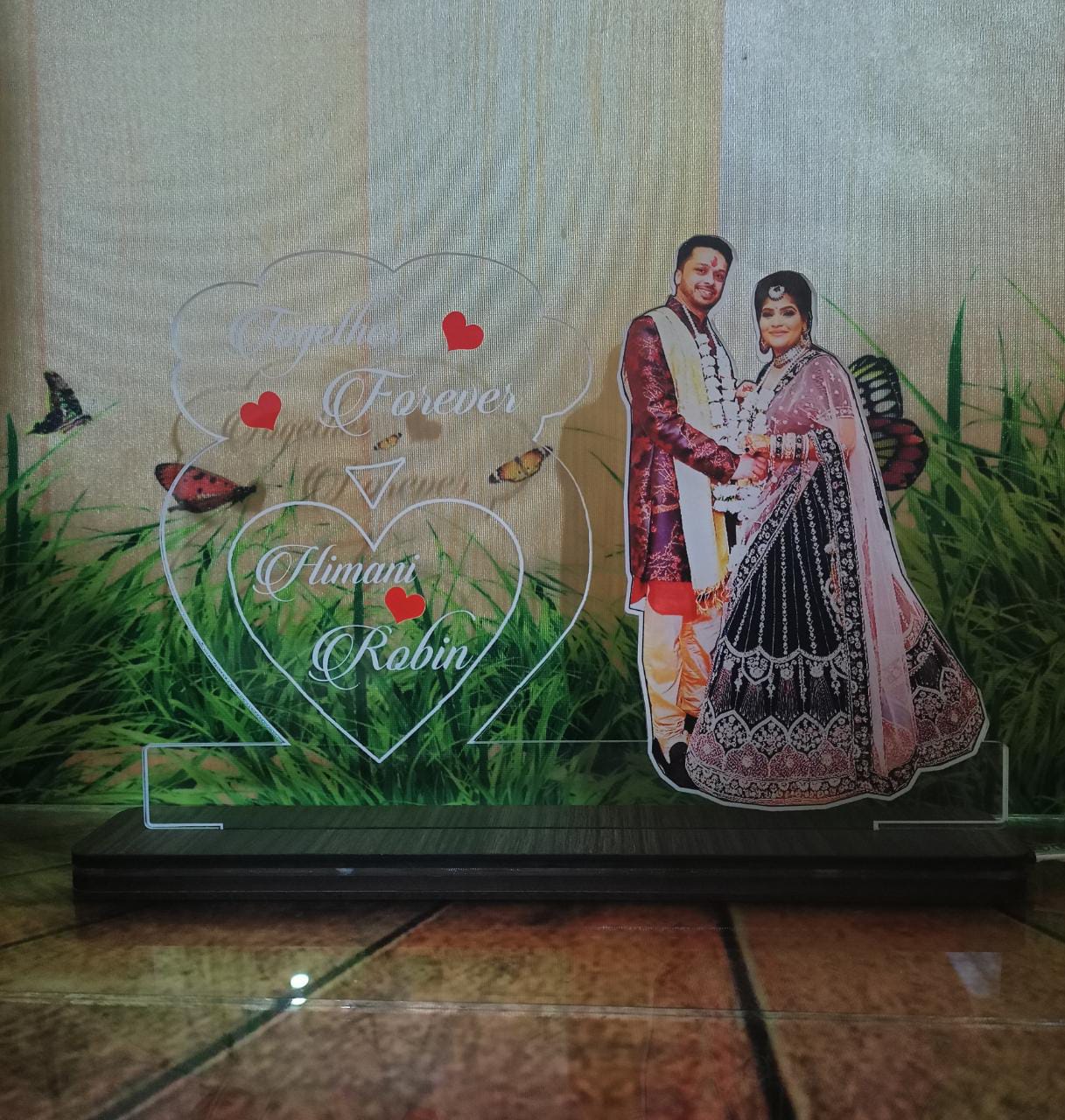 Material 4mm acrylic with wooden stand inbuilt LED